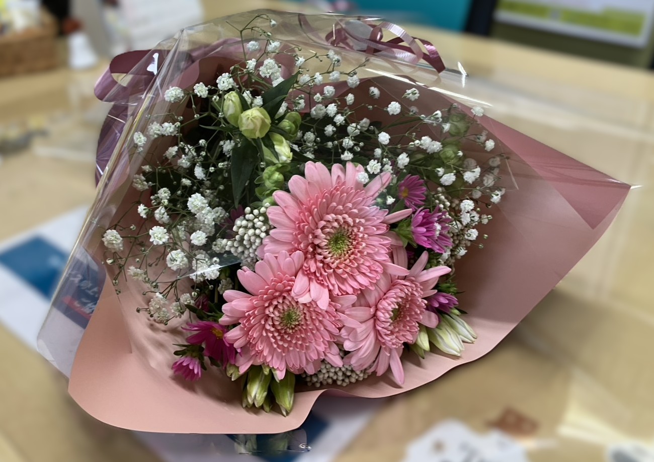 10月誕生日社員への花束です💐 落ち着いたピンクの色合いで素敵です🤩✨ お誕生日おめでとうございます⭐