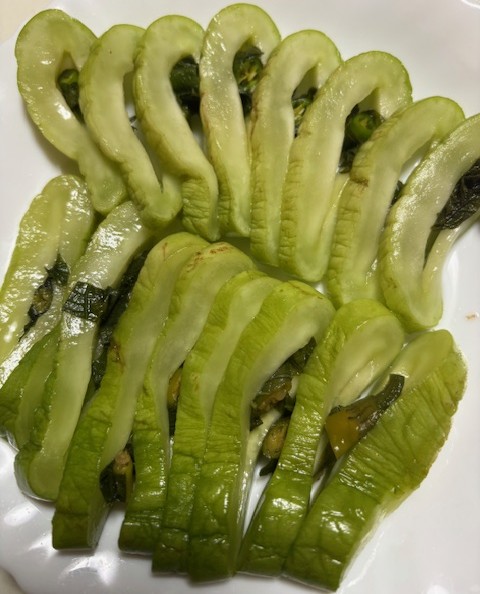 2025.08.24 瓜の鉄砲漬物 いただきましたm(__)m こんにちは! 那珂ハウジングです😊😊😊 先日、弊社 会長から手作りの【瓜の鉄砲漬け】をいただきました。 瓜が柔らかく、絶妙な塩加減で 間に挟んだ大葉と唐辛子のアクセントがよく 大変美味しくいただきました。 ごちそうさまでした‼ ありがとうございましたm(__)m