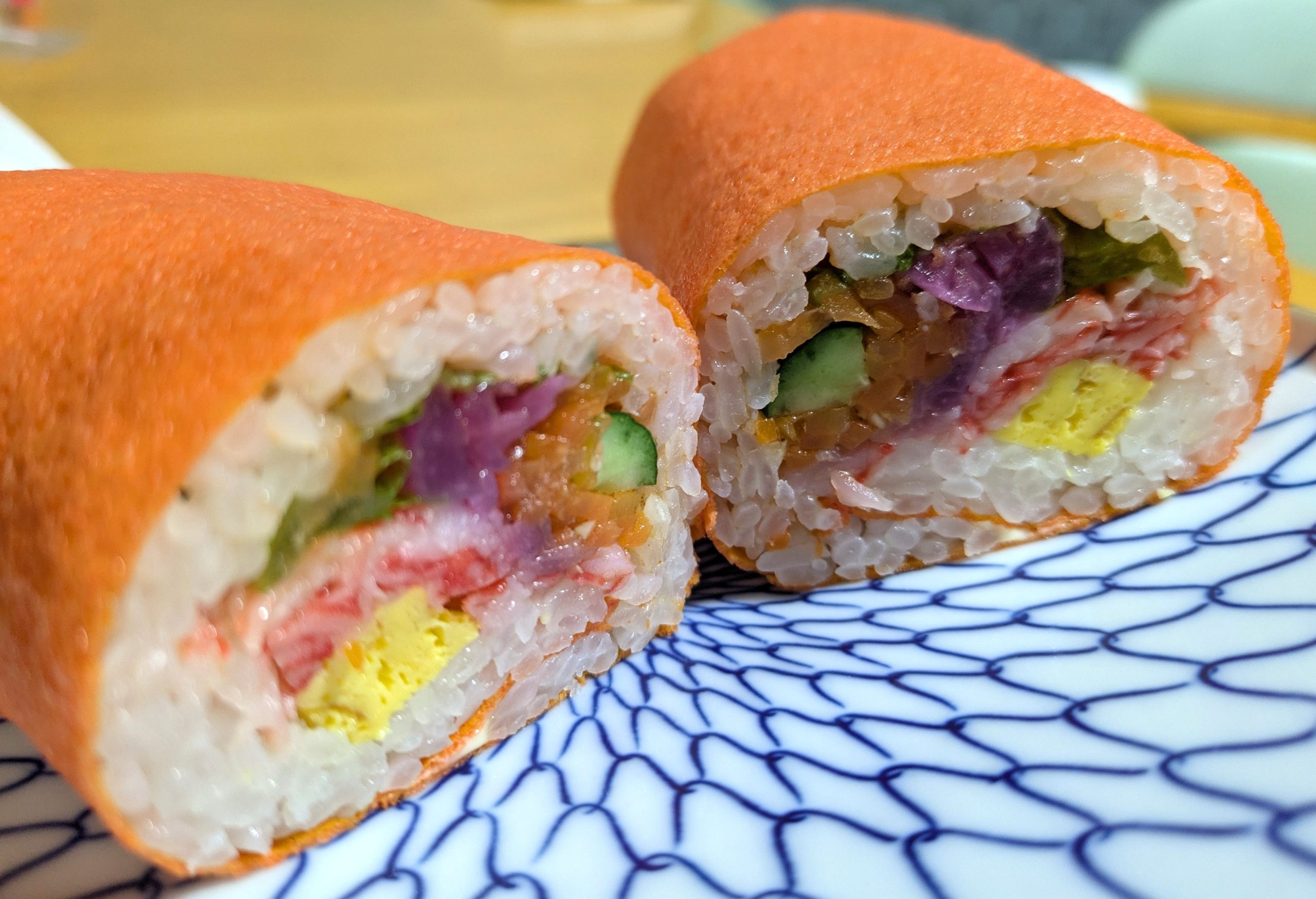 こんにちは、あんころ姉です! 一足早く、恵方巻を食べてしまいました!! かにかま、卵、数種の野菜を人参ドレッシングで味付けし、海苔の代わりに人参クレープで巻いたヘルシー恵方巻です。 と言っても、結構高カロリー(約700㎉)一本、完食しました!! もちろん、デザート付きで…[続きはこちら]