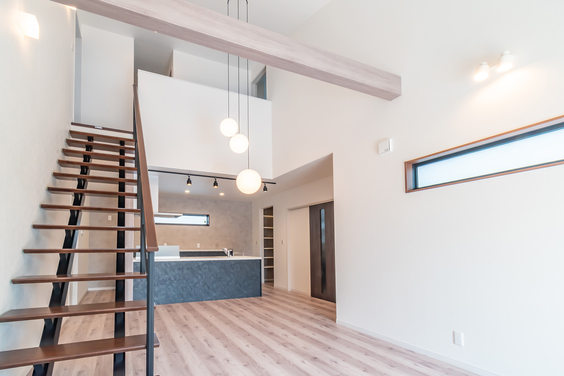 #吹き抜けリビング #スタイリッシュハウス #モダンデザイン #家事動線 #ランドリールーム #ファミリークローク #耐震等級3 #省令準耐火仕様 #高性能住宅