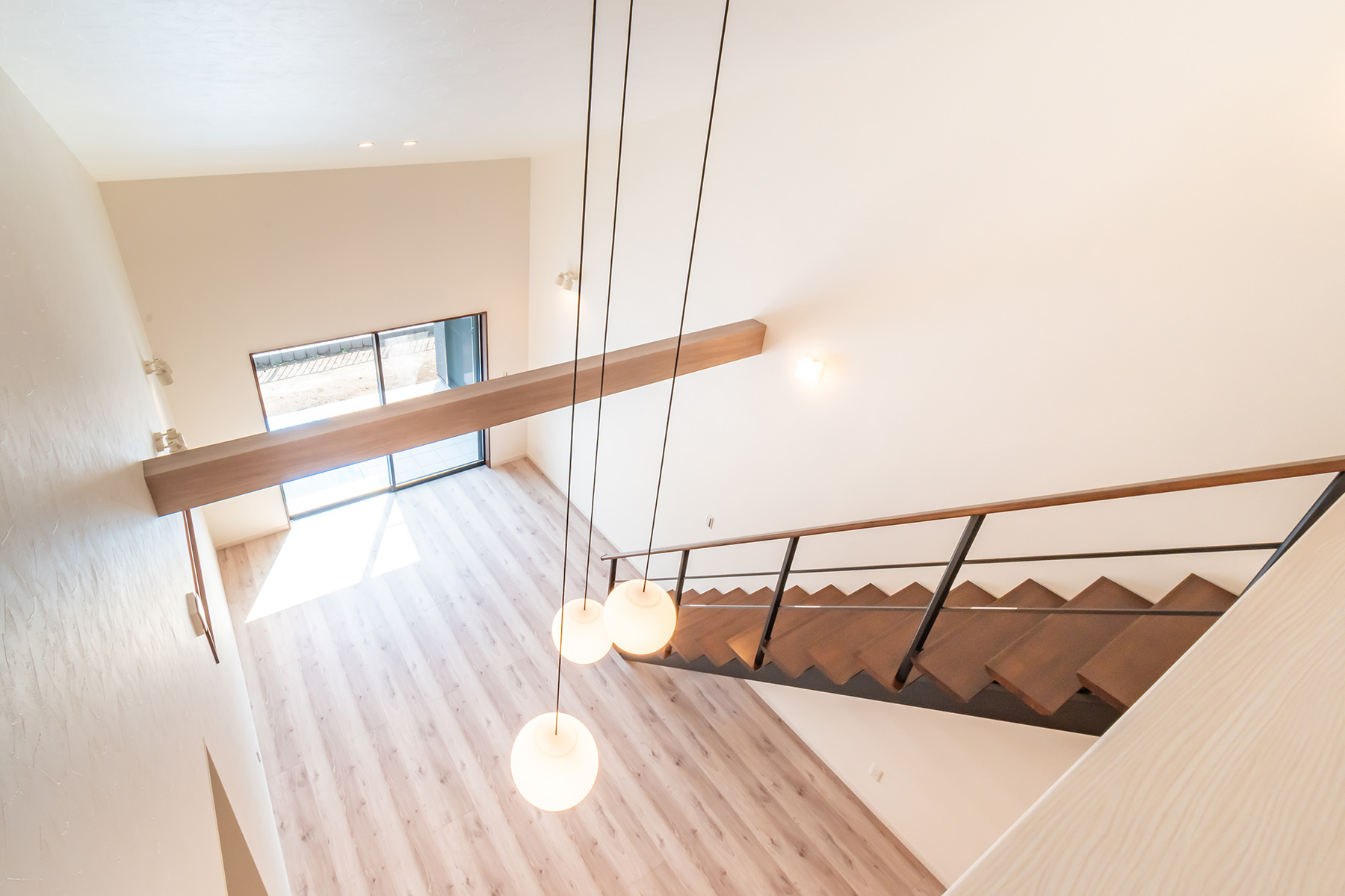 吹き抜けと直線美が映える、モダンスタイルの邸宅