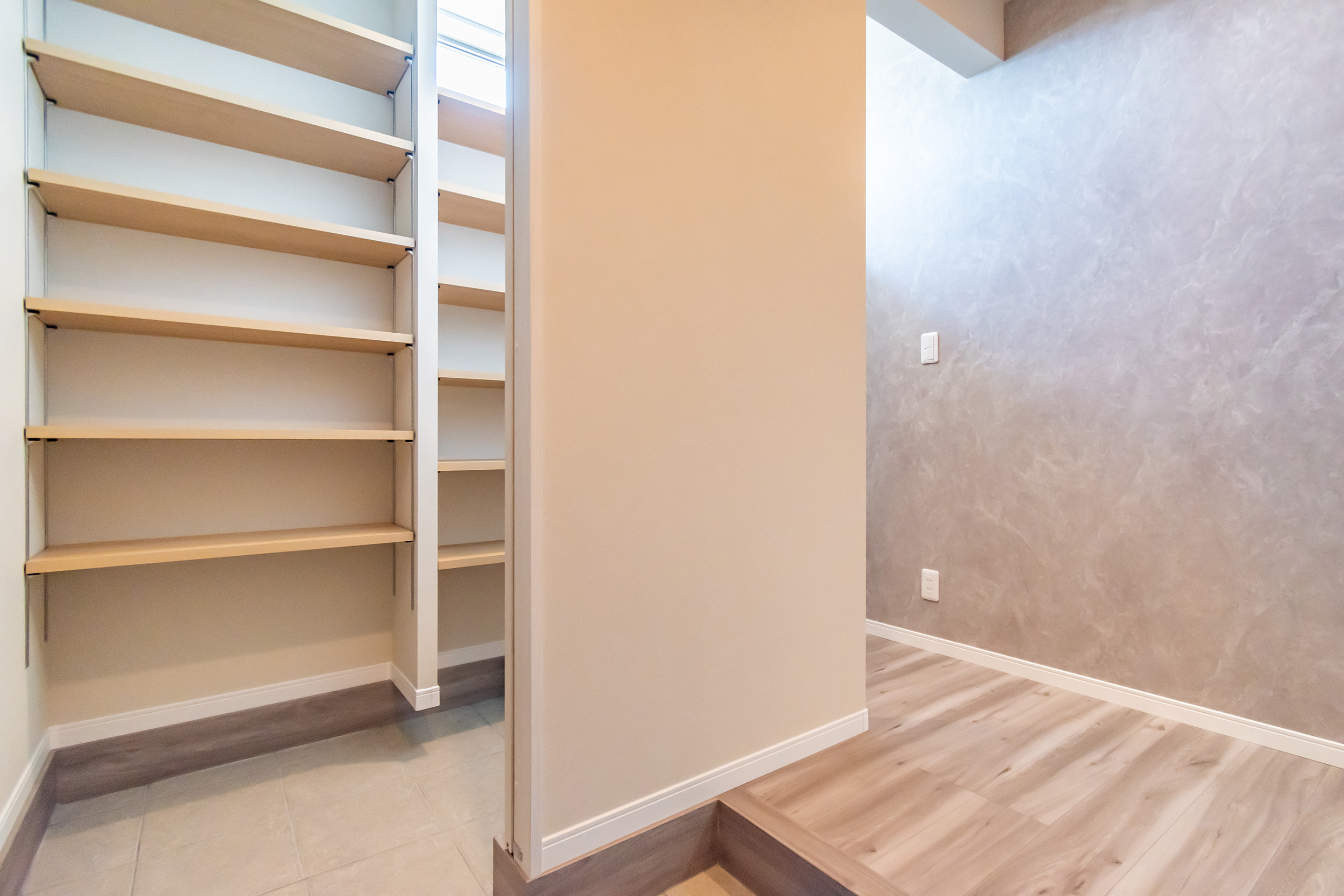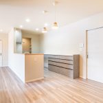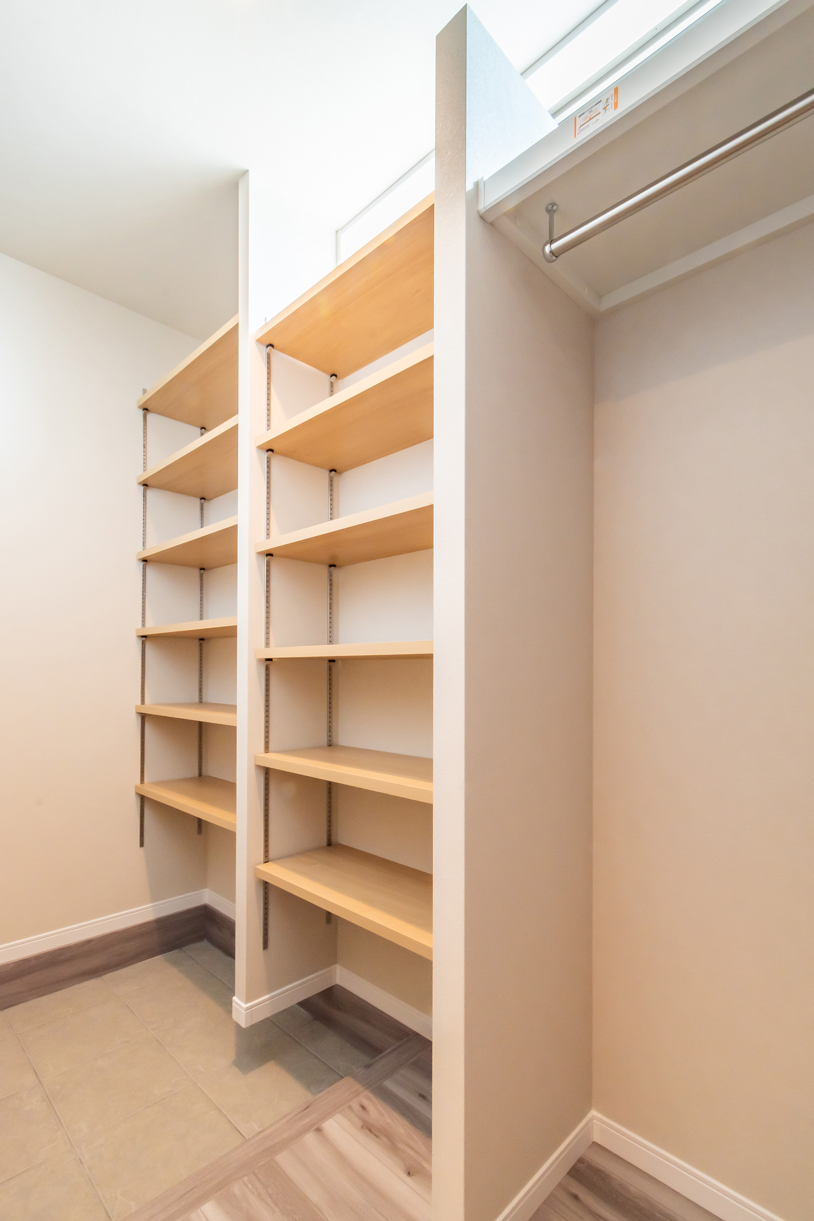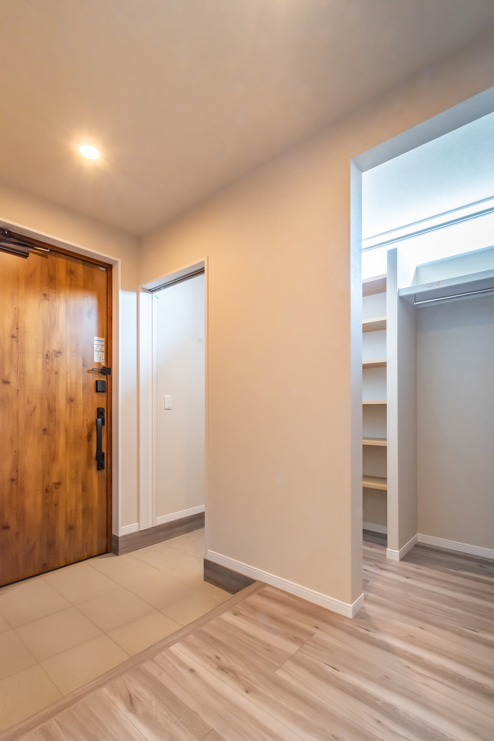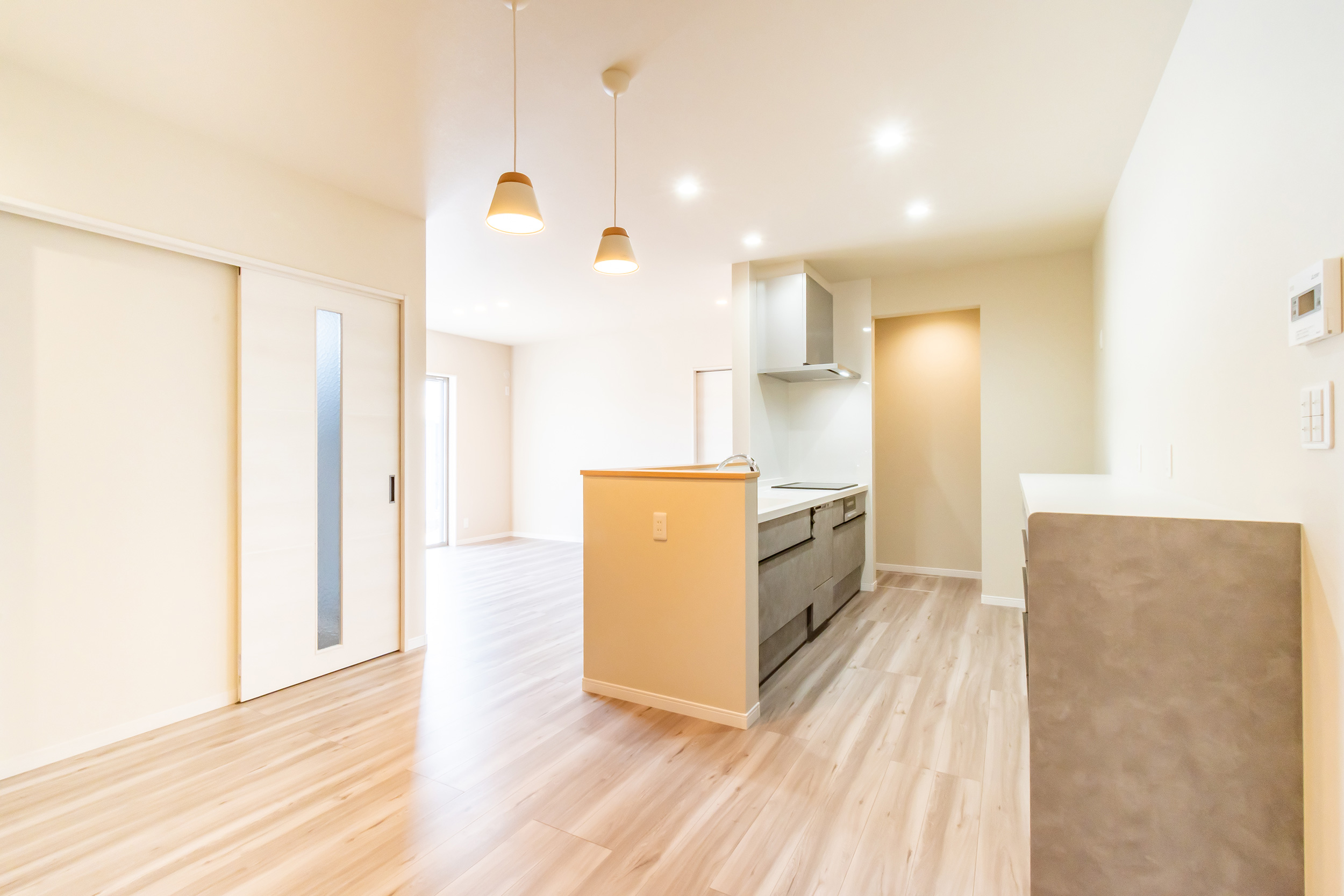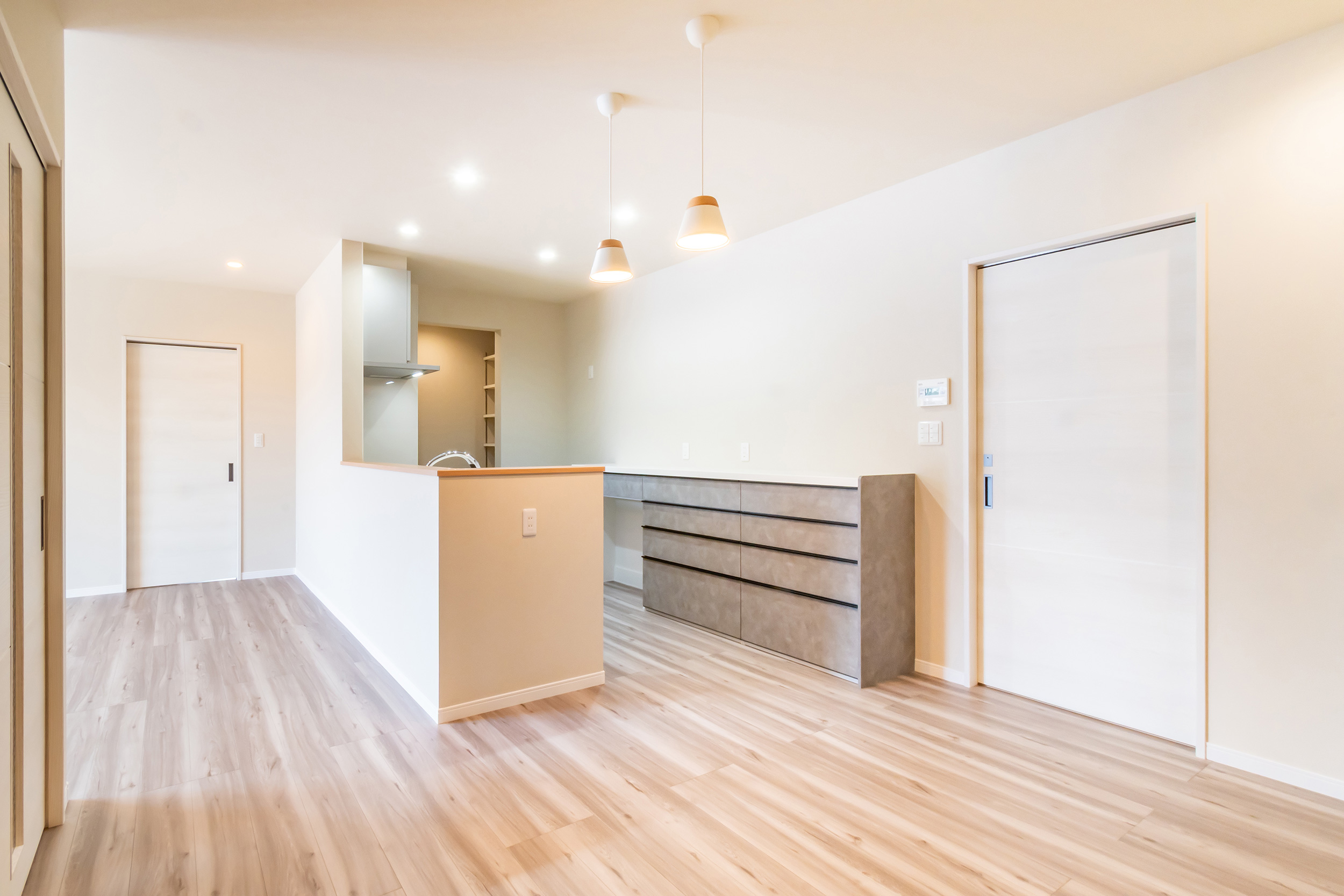 広々としたLDKは南向きの大きな窓から自然光が差し込み、開放感と上質な心地よさを演出します。キッチン横には収納力抜群のパントリー、ランドリールーム、そしてファミリークロークを配置。毎日の暮らしを効率的に、そして美しく整える間取りです。