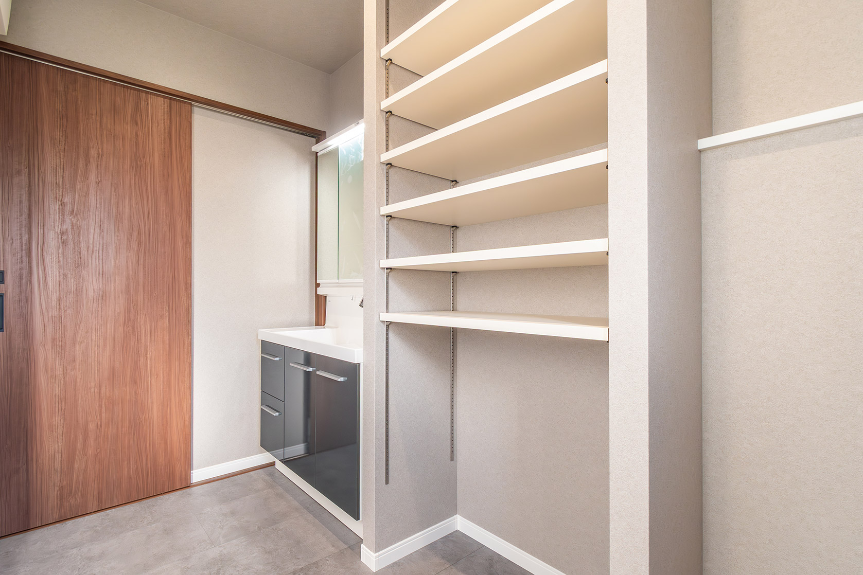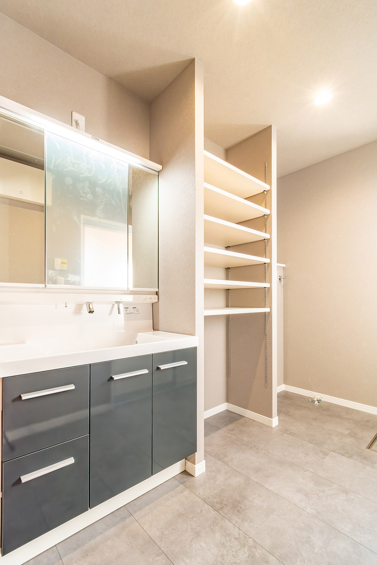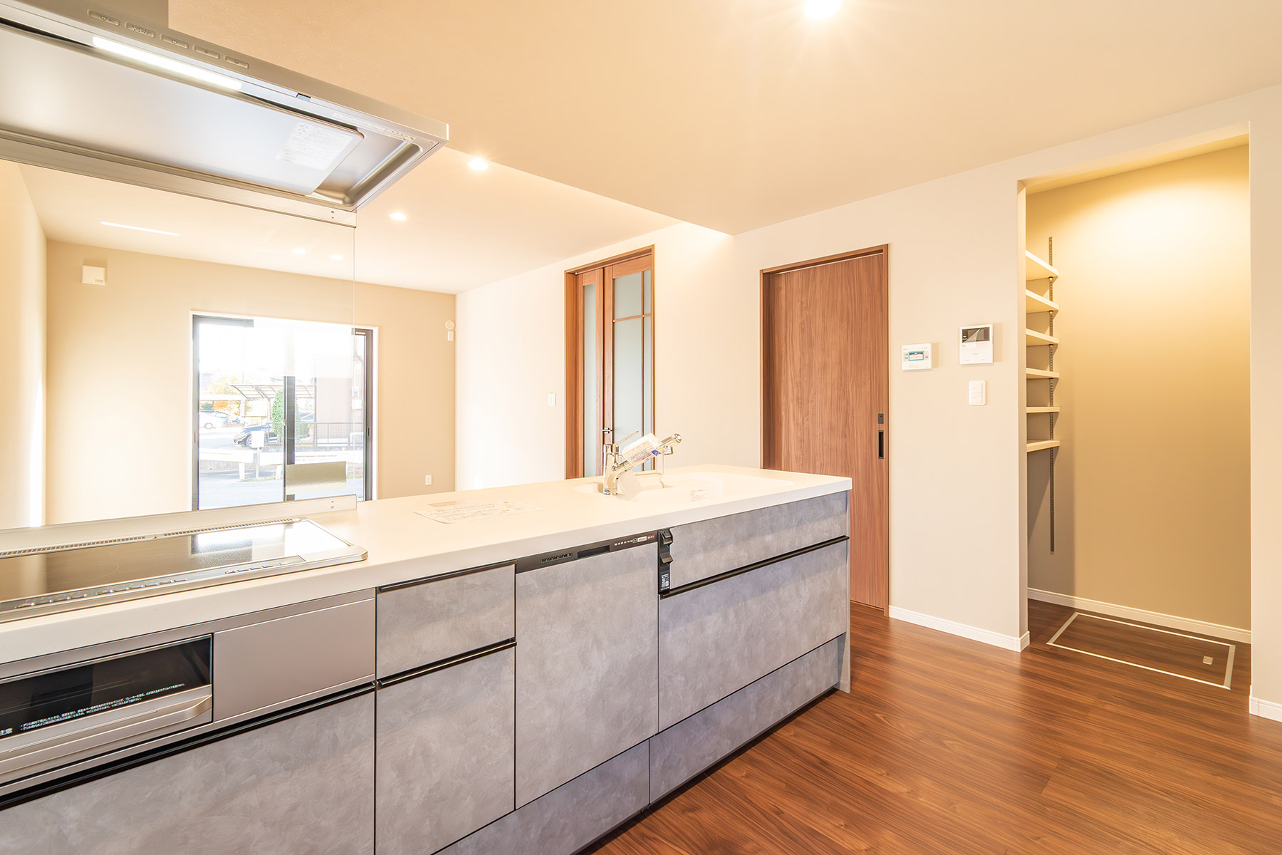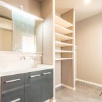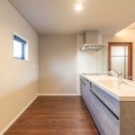 キッチン横には便利なパントリー、水まわりもまとめて時短に配慮。