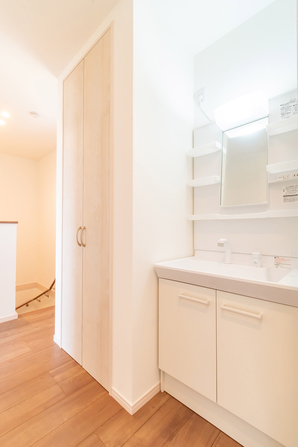 また、2Fホールにはセカンド洗面台を設置し、忙しい朝の身支度もスムーズに。