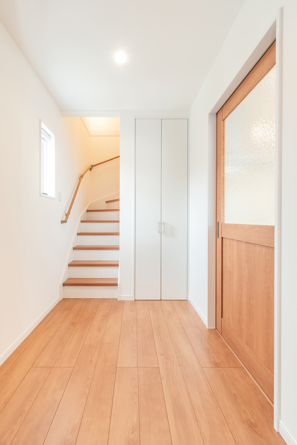 玄関・階段下・各部屋・ホールにも収納があり、「どこに片づけよう?」のストレスが減っていきます。