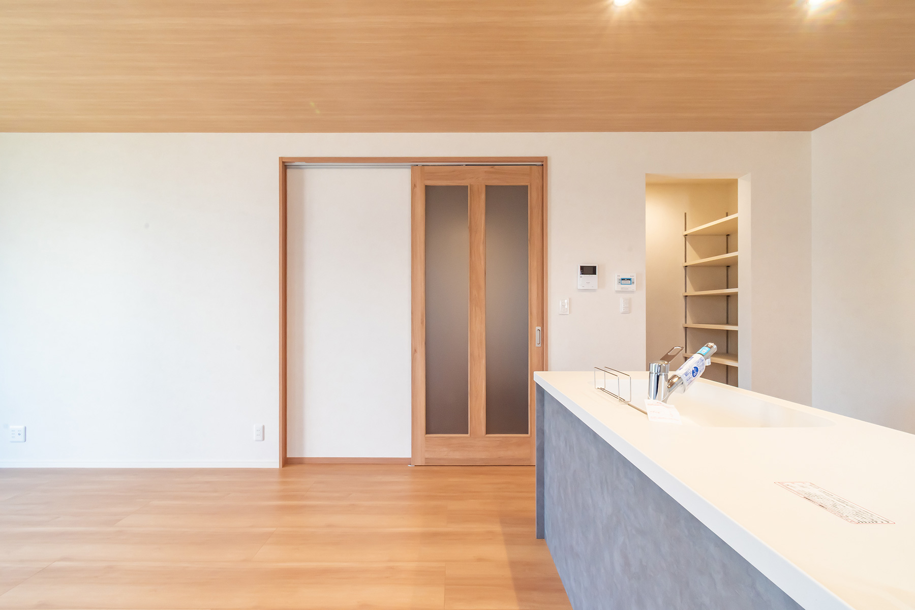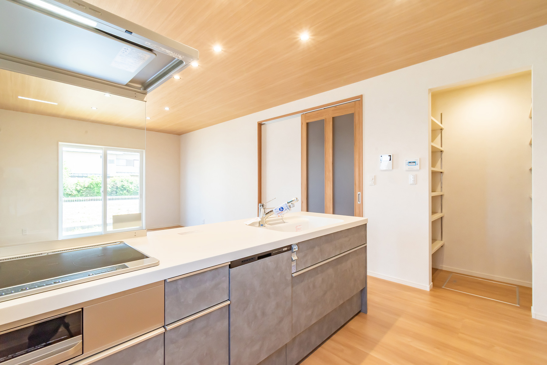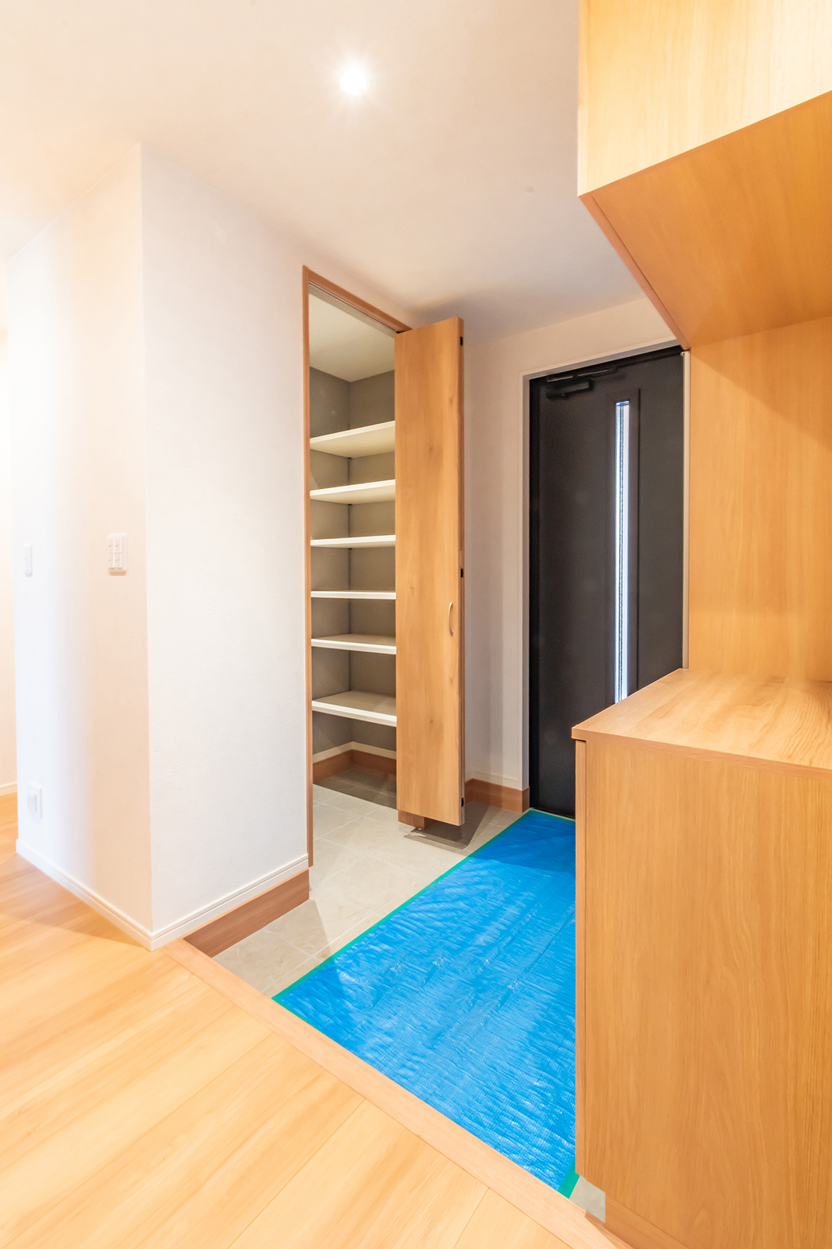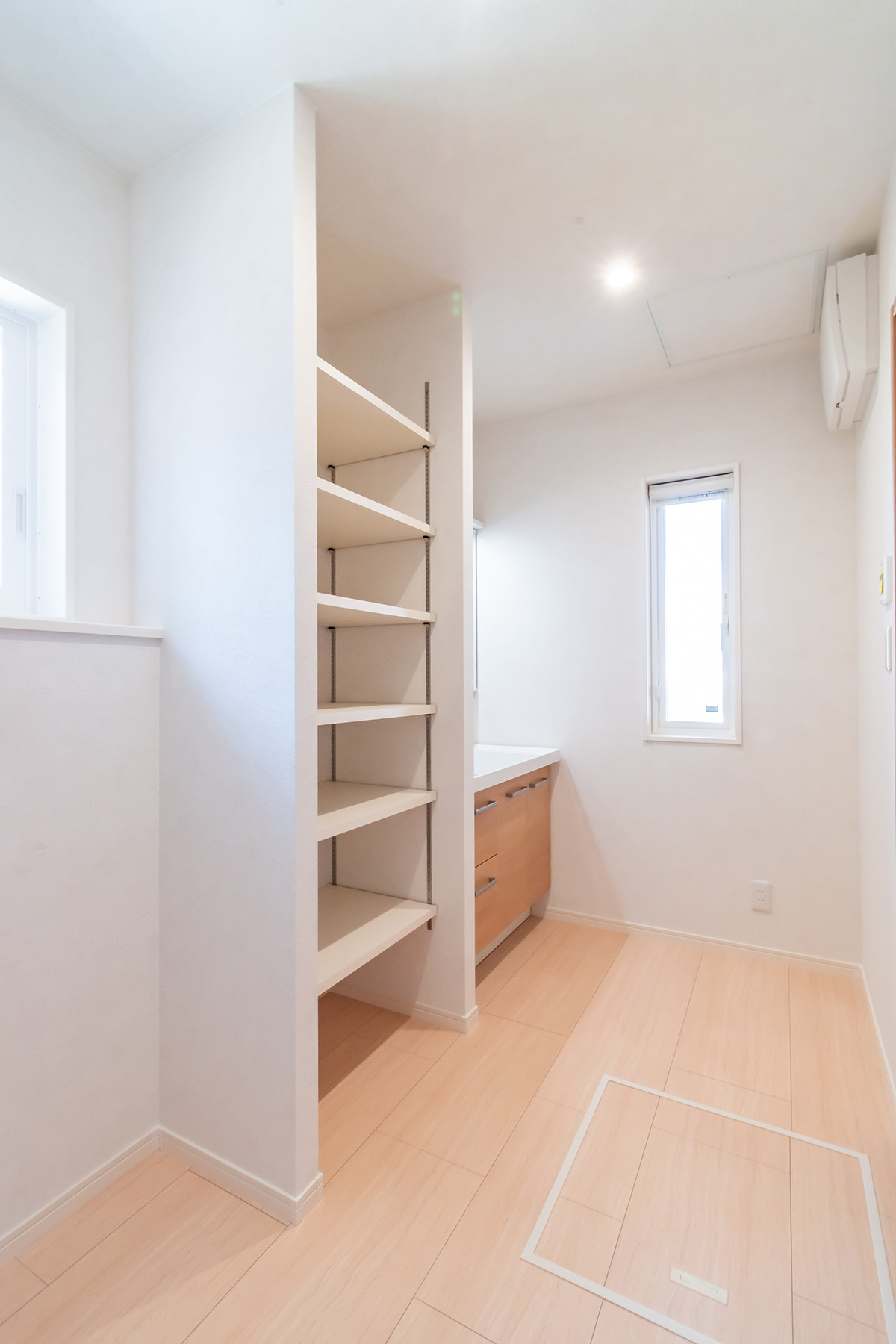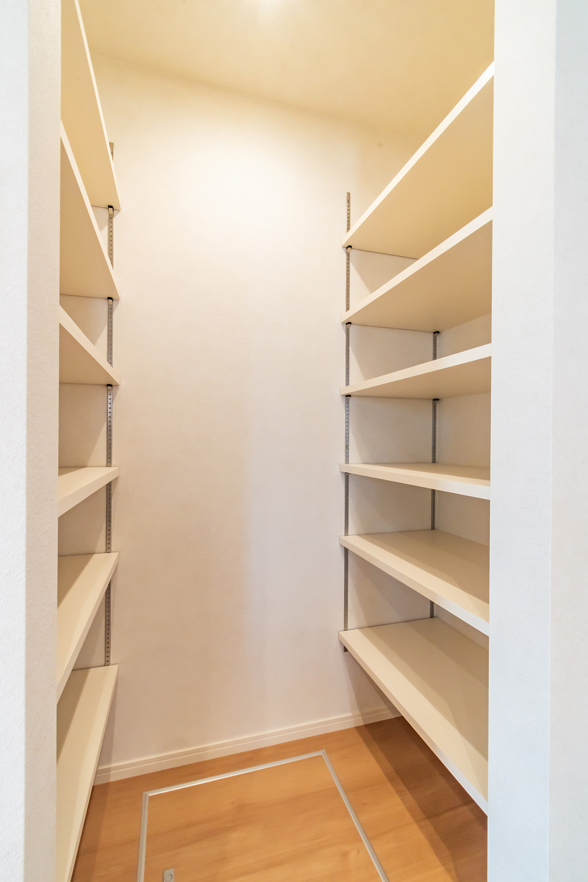 パントリーは可動棚付きだから、暮らしに合わせて棚の高さを変えられ、使いやすい設計です。