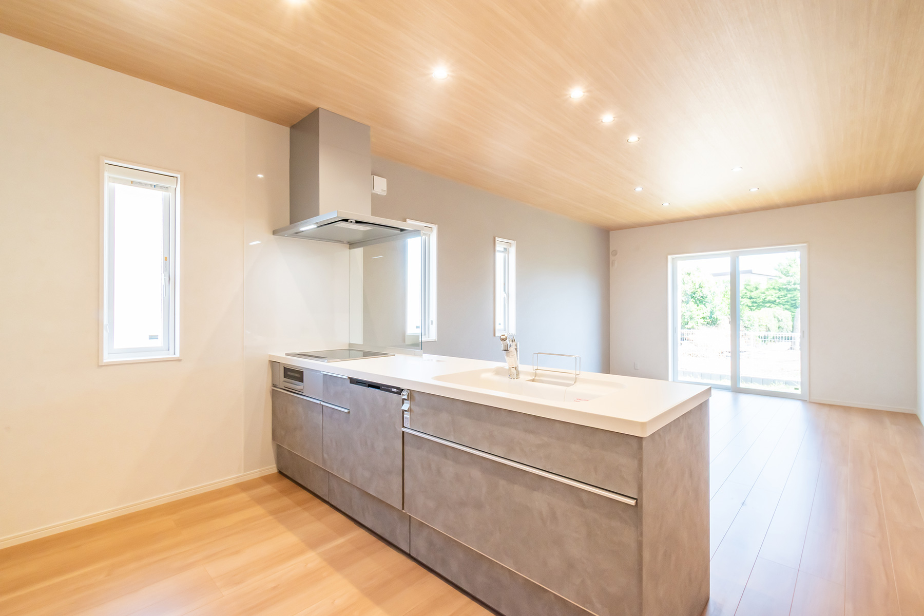 LDKは16帖。キッチンとダイニングの間に無駄な動線がなく、料理中も配膳もスムーズ。