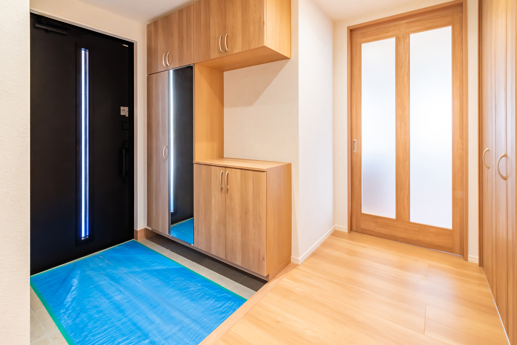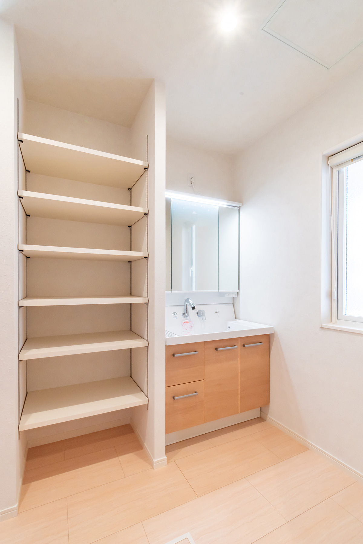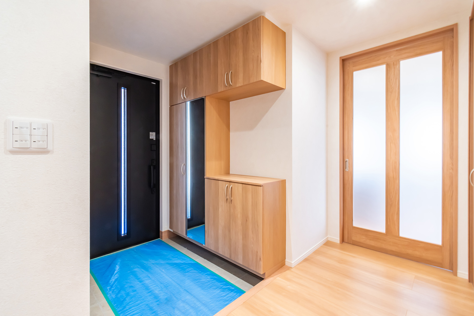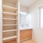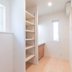 各部屋に収納がついているのはもちろん、ホールに2箇所設けられた可動棚収納は、掃除道具や季節もの、子どもの通学セットなど、日々の「すぐ使いたいもの」をスッキリ整えられます。