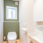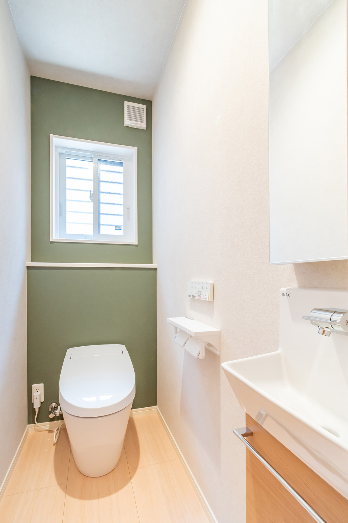 トイレ内の手洗いとミラーは、手軽な清潔習慣と来客時の印象づくりにひと役。